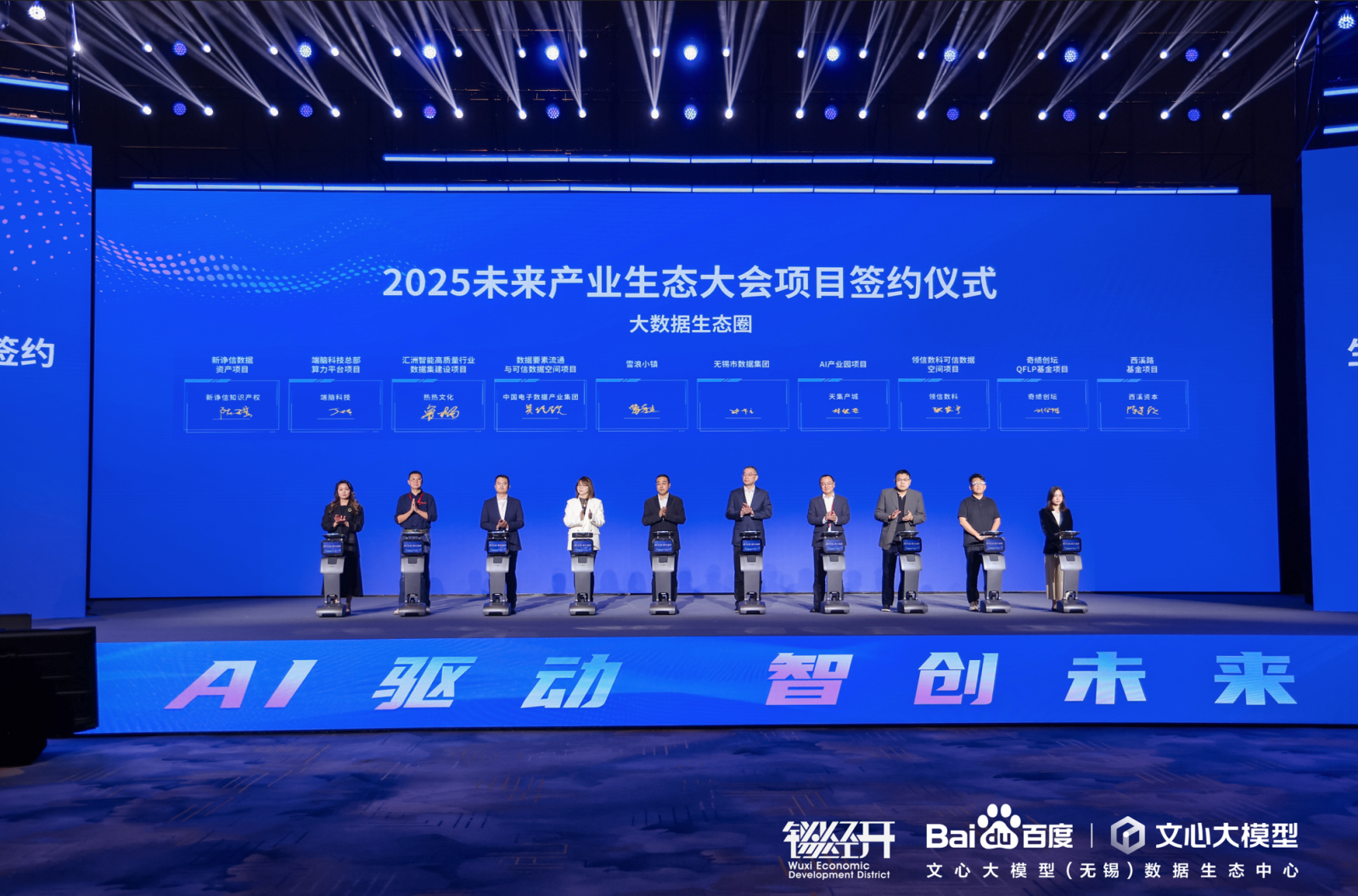 本次大会以“AI驱动,智创未来”为主题,聚焦人工智能产业的前沿技术、应用场景和生态建设。会上,近60个生态圈产业链项目成功签约落地,覆盖具身机器人、大模型及智能体、大数据、空天信息、智能网联汽车等五大前沿领域,展现了人工智能产业蓬勃发展的活力。